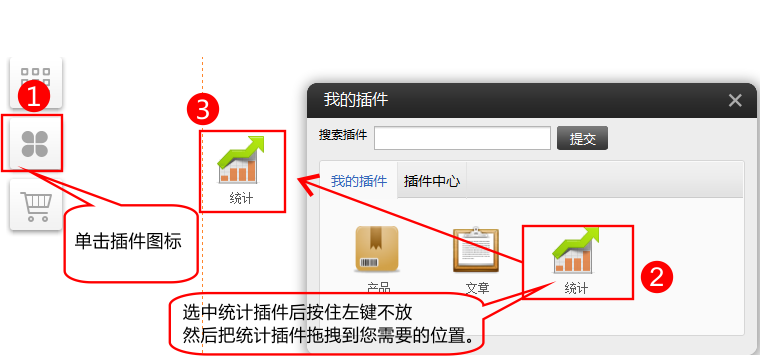 1、操作步骤如下:插件-》我的插件-》点击拖拽“统计”插件 (没有请在“插件中心”启用)