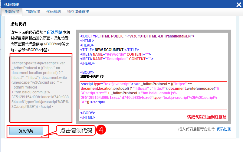 本小节共包含4点。1、通过本部分的操作,您可顺利为您的网站设置百度商桥。