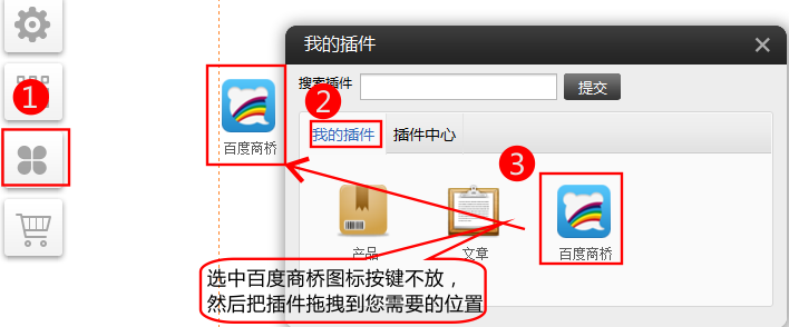 1.依次点击 插件-》我的插件-》百度商桥(如果没有,请在插件中心中启用百度商桥)