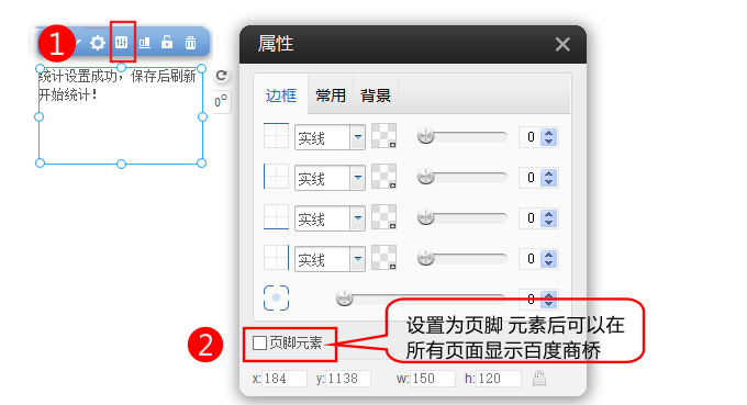 注意:如果需要所有页面都显示百度商桥需要在模块上方点击设置-》勾选页脚元素。