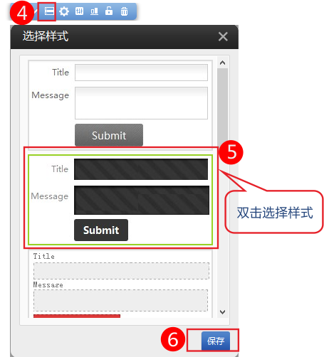 1、 拖曳留言插件后,先选择留言插件的样式,然后点击保存