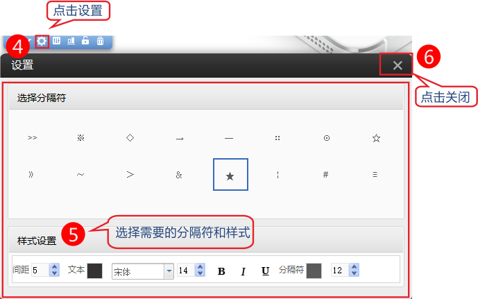 2、在模块上方点击设置-》选择需要的分隔符并设置样式。